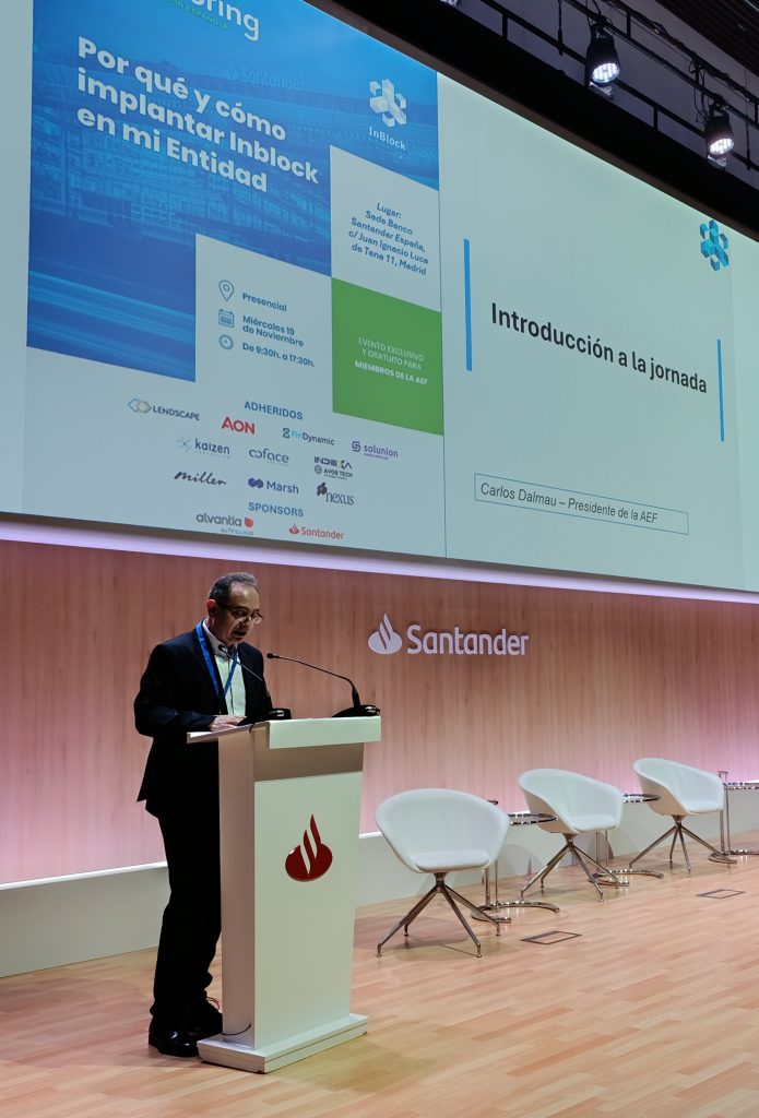 Bajo el título “Por qué y cómo Implantar INBLOCK en tu entidad”, se desarrolló el evento que congregó a más de 150 personas de la práctica totalidad de los 42 miembros que componen la Asociación. La apertura del acto corrió a cargo del presidente del AEF, D. Carlos Dalmau, y de Dña. Raquel Fernández, anfitriona del evento, quienes pusieron de manifiesto la relevancia de esta iniciativa y agradecieron la importante acogida y participación al acto.